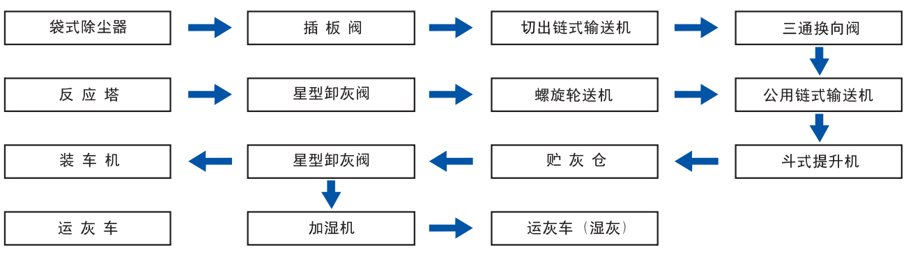 本系统工艺布置、设备组合灵活合理,能与各种型式焚烧炉的烟气处理系统相配套,设备技术气密性好,消除二次扬尘,能长期无故障连续运行,充分满足了垃圾焚烧电厂的灰处理及环保要求。