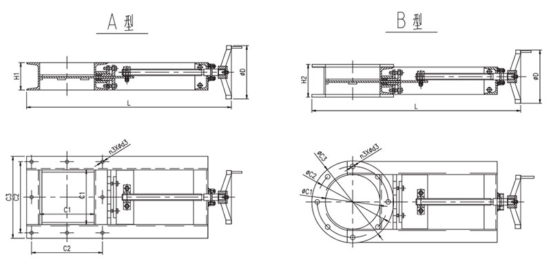 AZF系列手动插板阀外形示意图