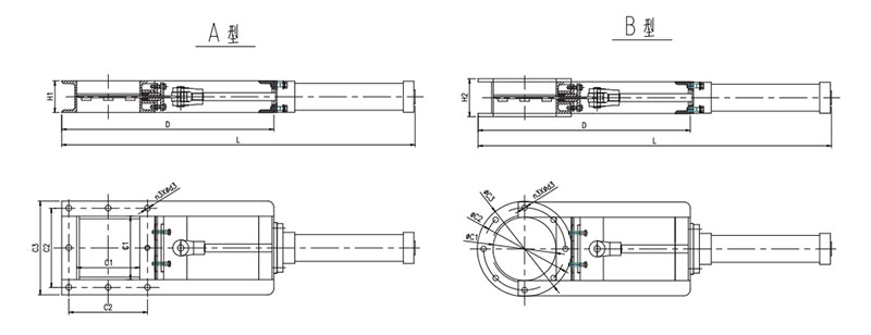 QZF系列气动插板阀外形示意图